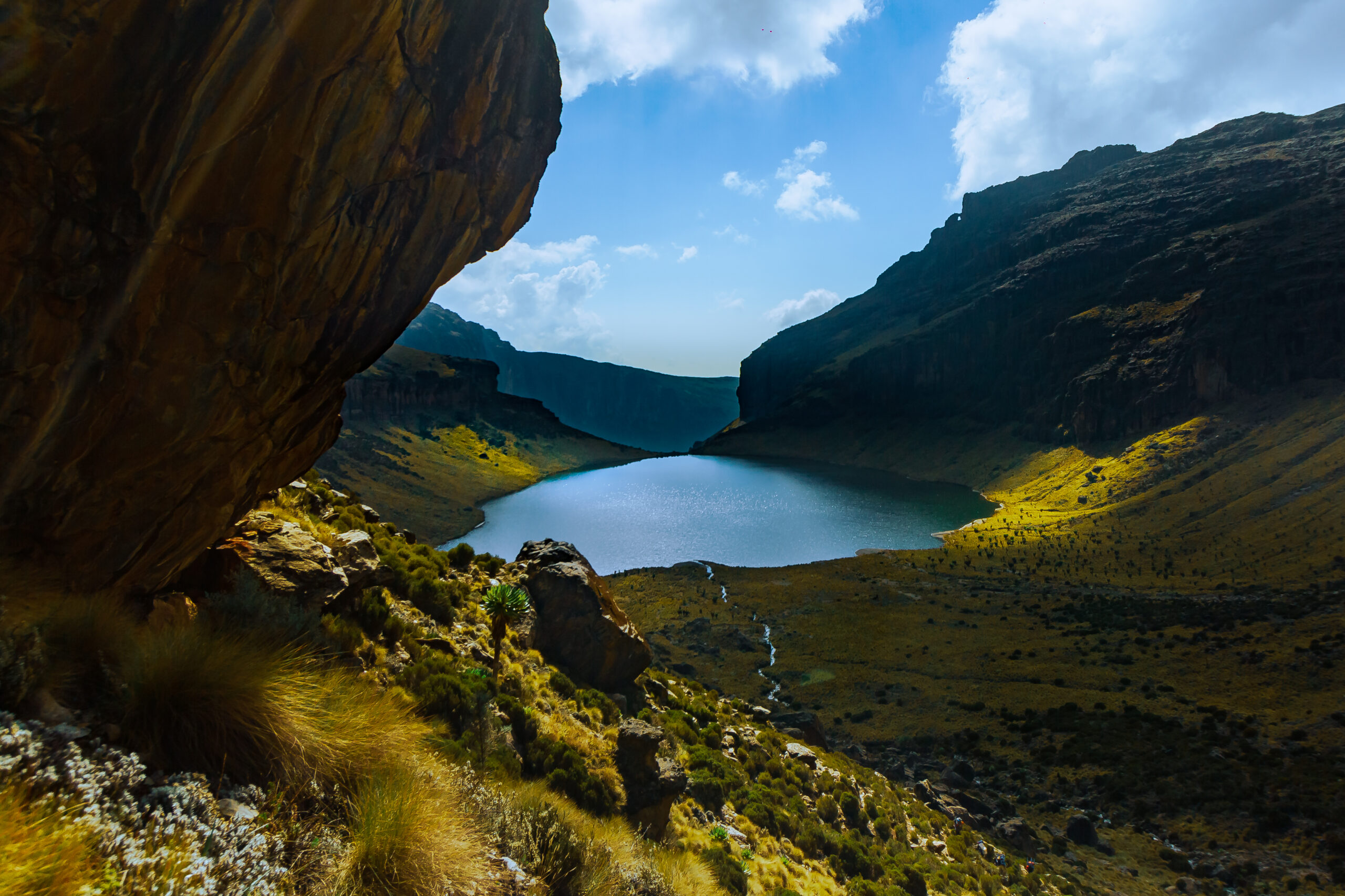 Lake Mumbi is a stunning, high-altitude glacial lake located in the Gorges Valley on Mount Kenya. Sited in the moorland, it is one of the waxed lyrical natural wonders seen along Chogoria Route, especially of its appearance of grandeur; and is surrounded by towering cliffs and rugged rock formations, offering unparalleled views of Mount Kenya’s highest peaks and making it a popular destination for mountaineers on the Chogoria route. There is a campsite near the lake, often considered one of the most spectacular in Kenya.