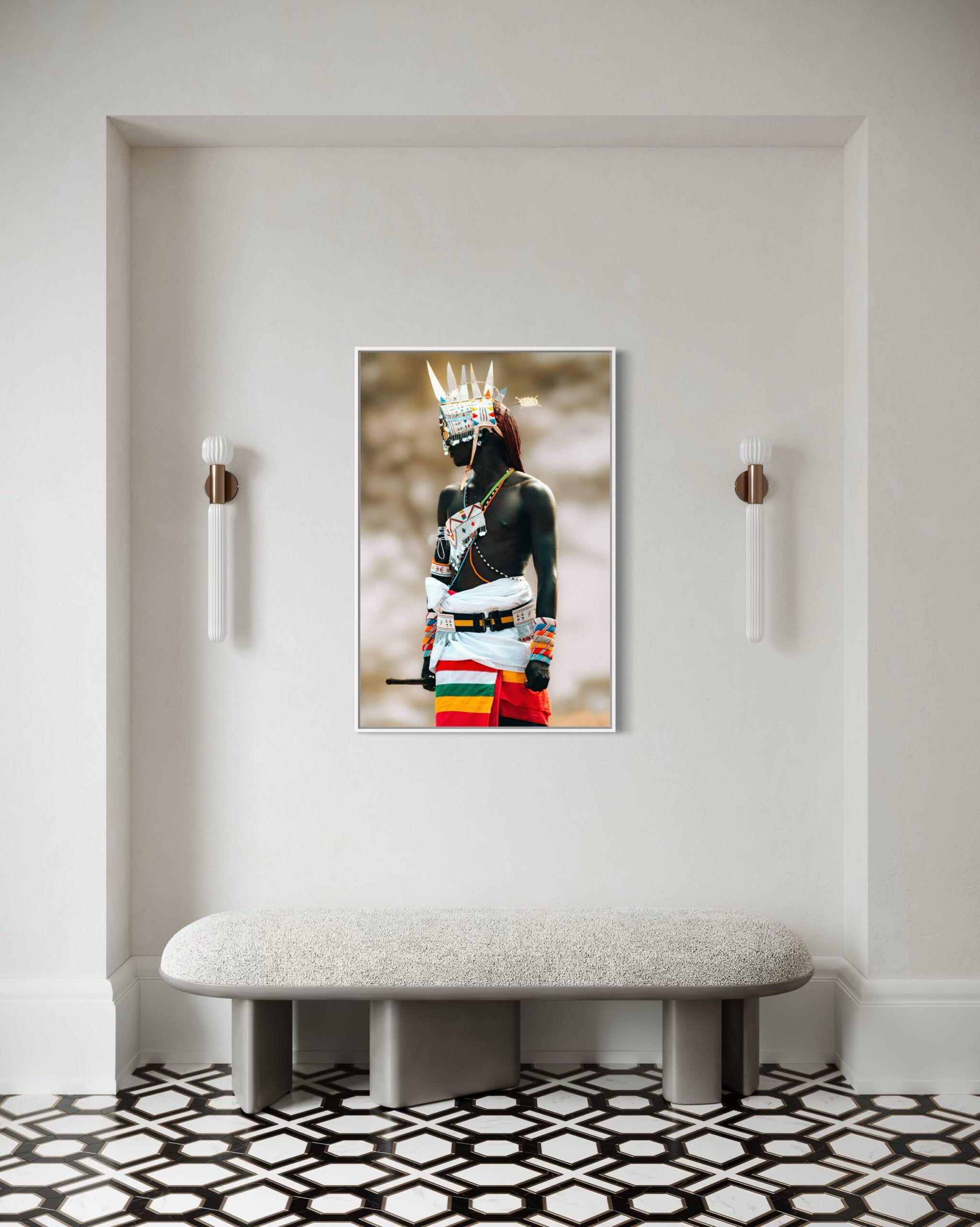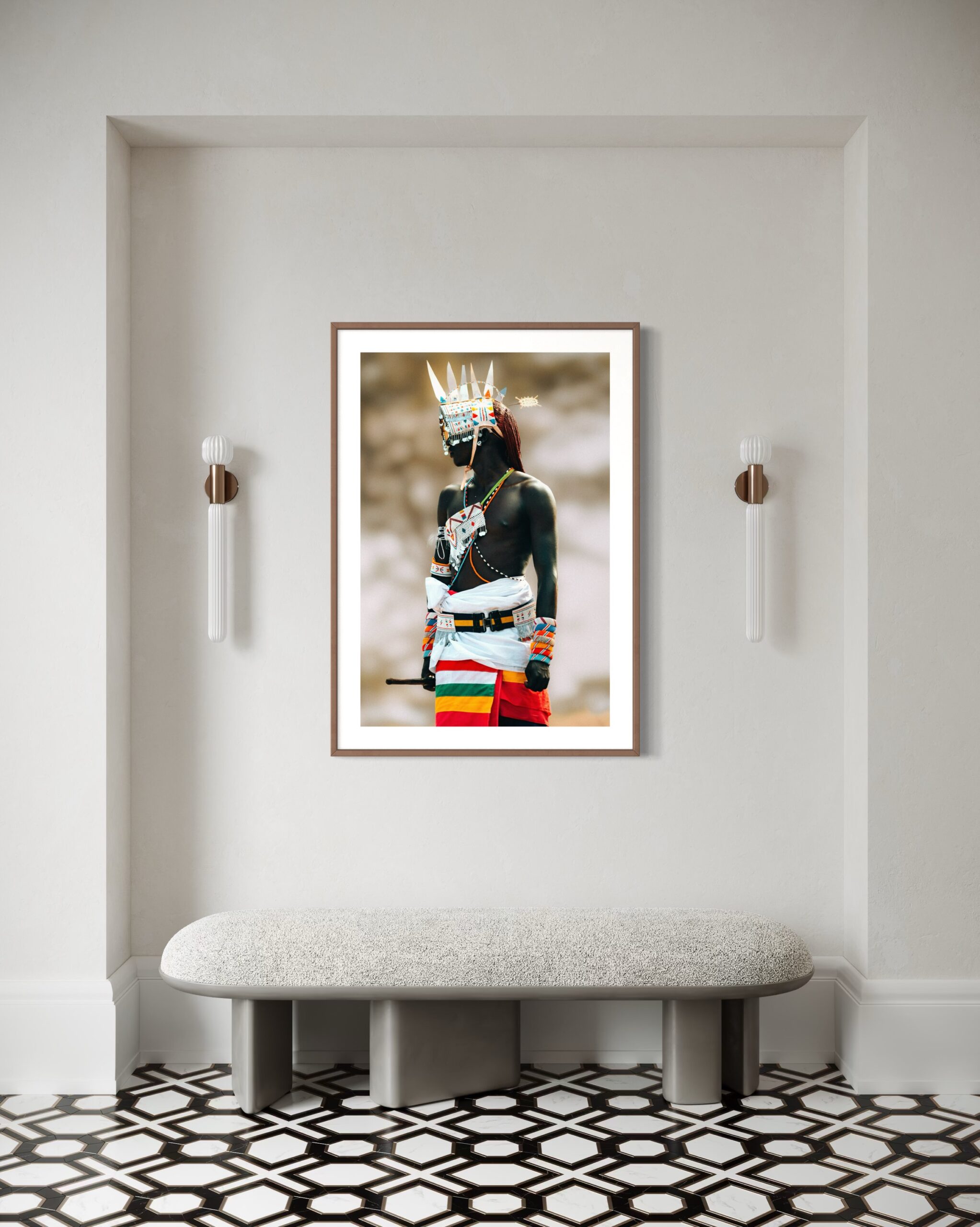 The regal presence of a Samburu moran (young warrior) in traditional ceremonial attire, celebrating his identity during the Tobong’u Lore Cultural Festival. The vibrant colours and adornments highlight why the Samburus are often referred to as the “Butterfly People”.