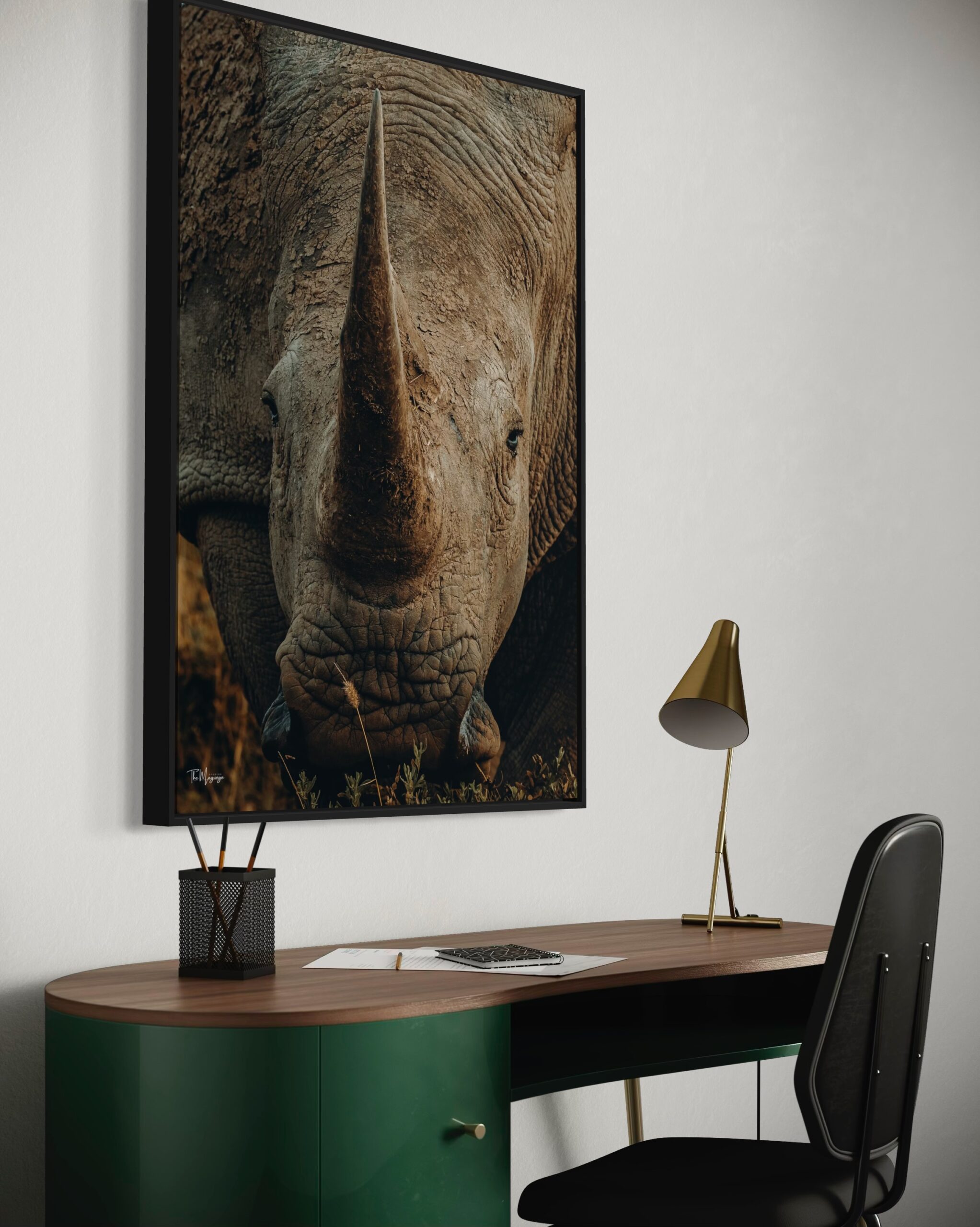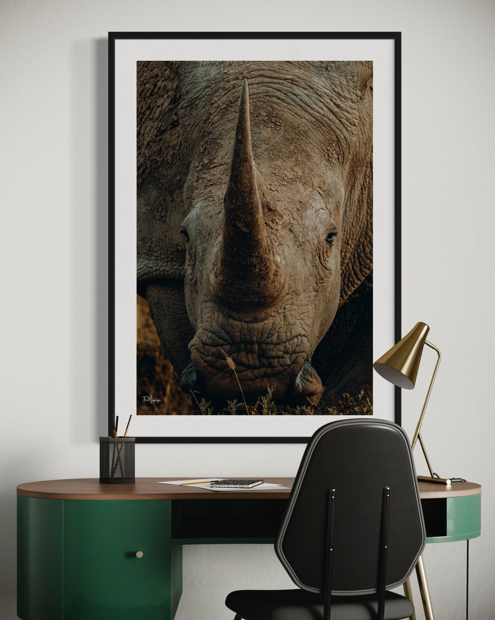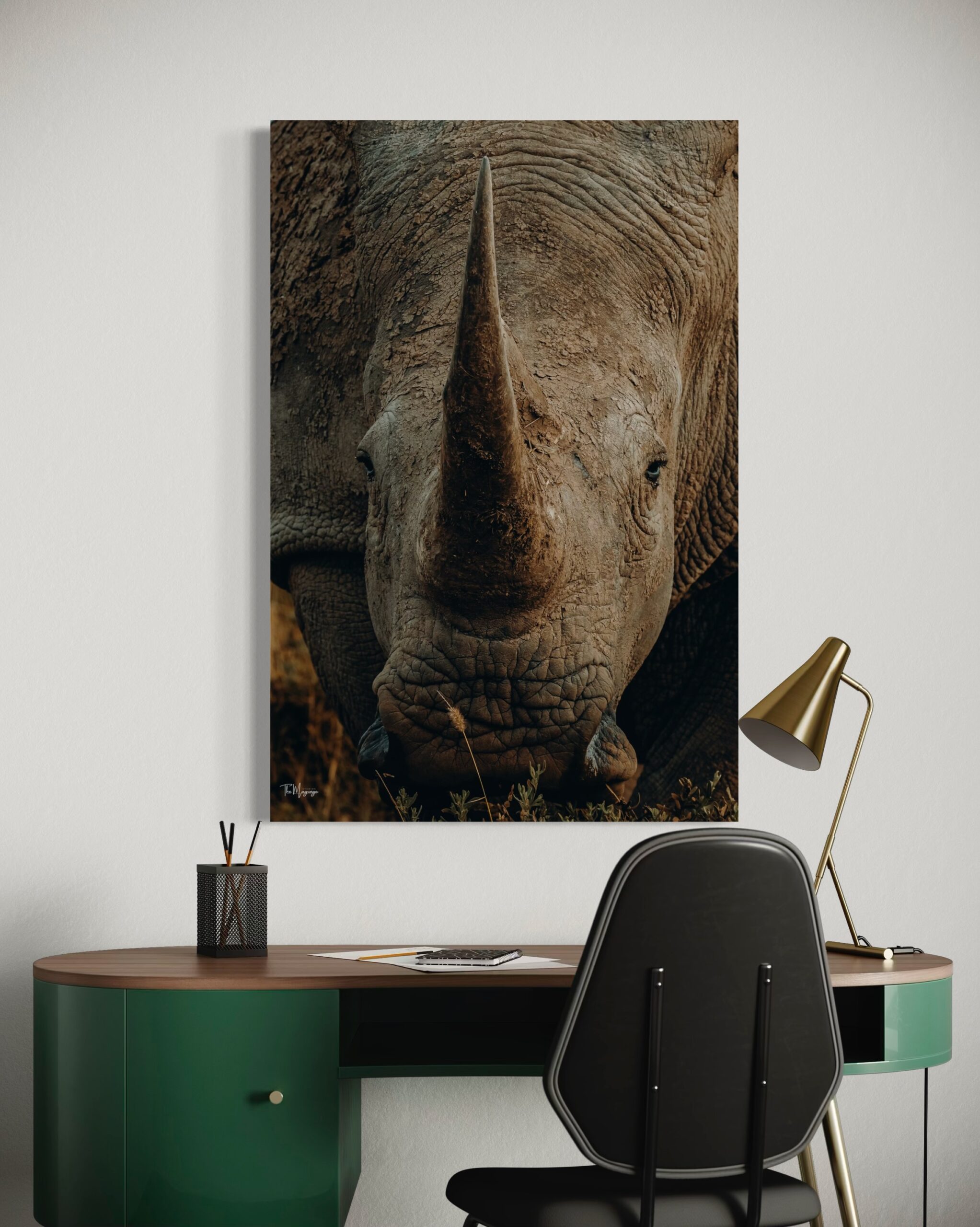 A close up of a rhino, capturing its rugged texture as well as the serene power and ancient dignity of this magnificent creature.