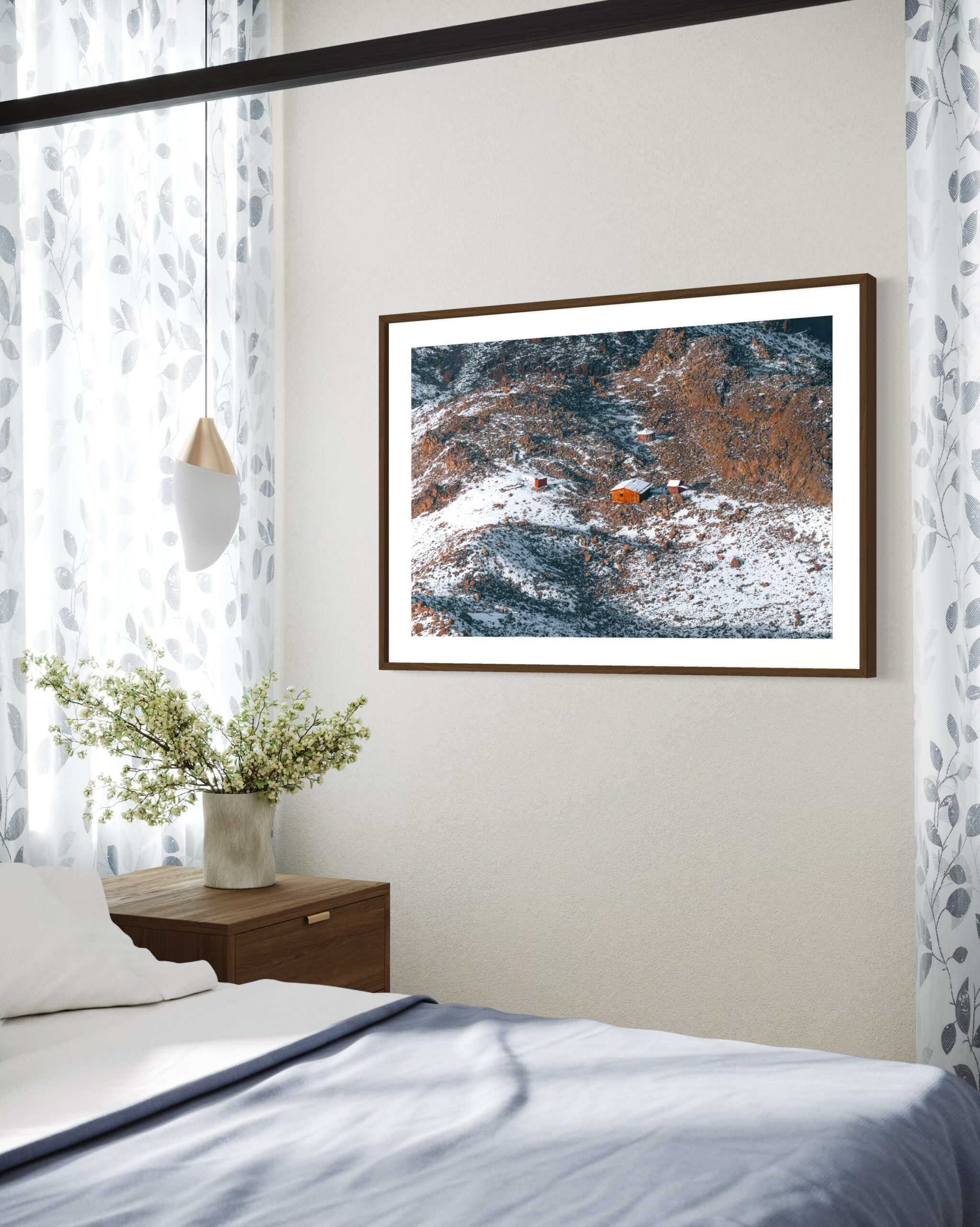 The quiet charm of a hidden cabin surrounded by snow and rock up in Mount Kenya. It is the last point of stay before summiting Lenana Point.